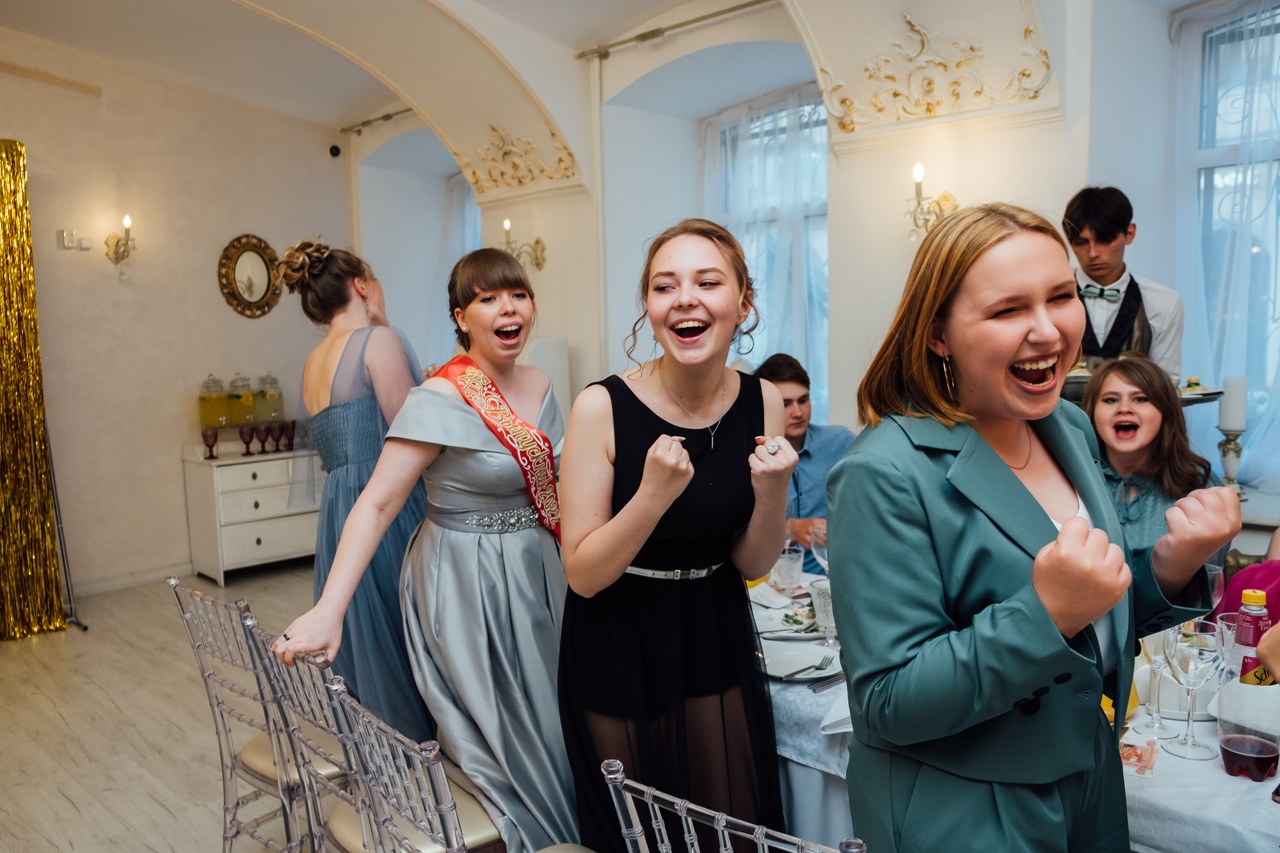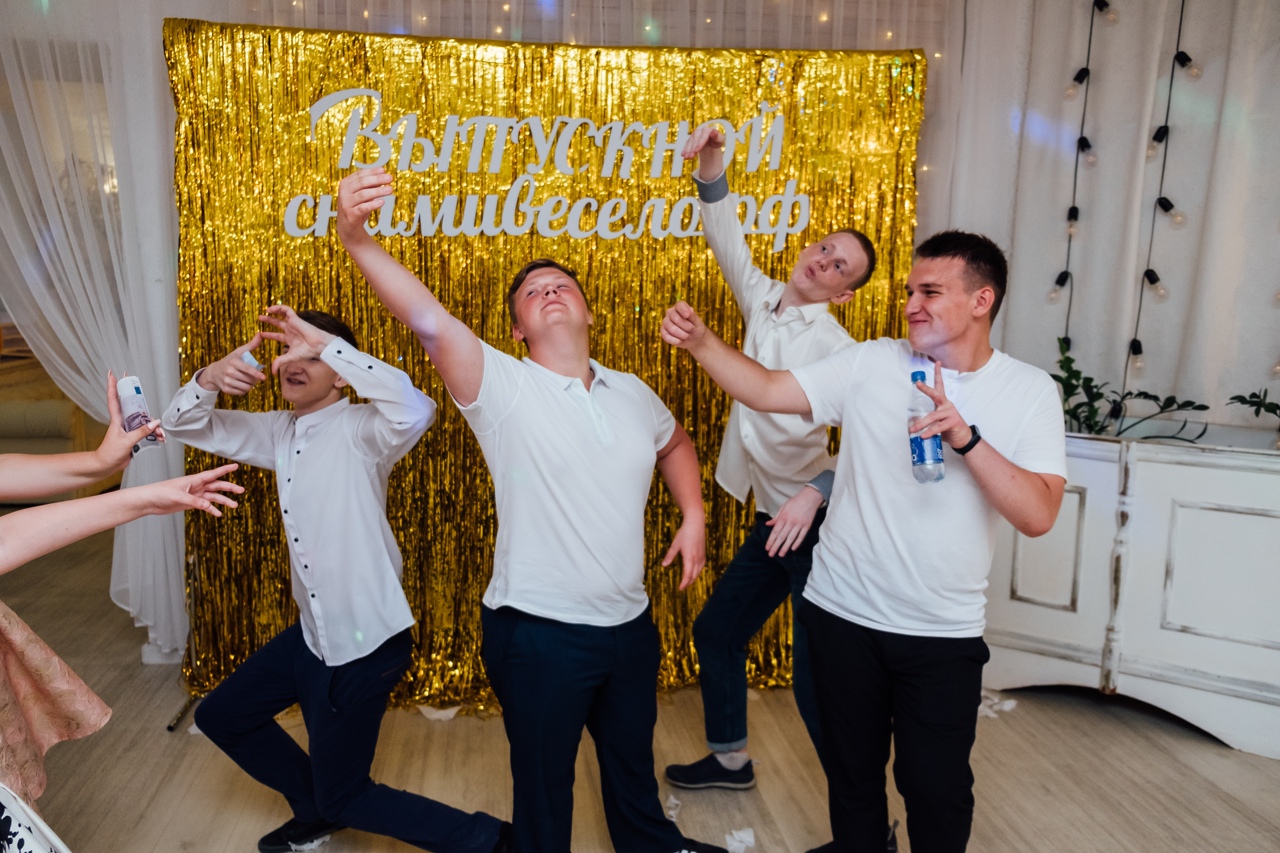 Выпускной проходит в банкетном зале, на протяжении 2х часов выпускники примут участие в весёлой развлекательной программе и в завершении устроим взрывную серебряную дискотеку. На протяжении всего праздника будет работать фотограф.